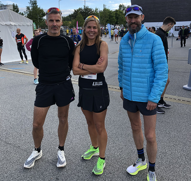 Tre spente løpere – Til tross for begrenset tid i startområdet rakk Børge, Tommy og jeg å diskutere våre slagplaner for dagen. Tommy møtte jeg første gang på en Springtime Training Camp i Portugal tilbake i 2015. Siden den gang har vi møttes i forbindelse med løpsdeltakelser rundt omkring i verden. Det skulle bare en pandemi til for å møte på hverandre hjemme i Norge.