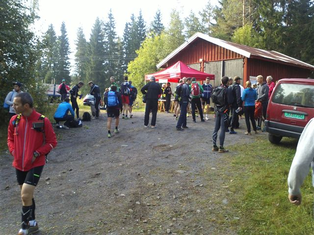 Etter å ha fått noe å drikke, samt en flott trøye for fullført løp, fant jeg sekken og skiftet til noe tørt. Var på vei opp til p-plassen da jeg traff Trond Inge som sa «er du her allerede?»..
